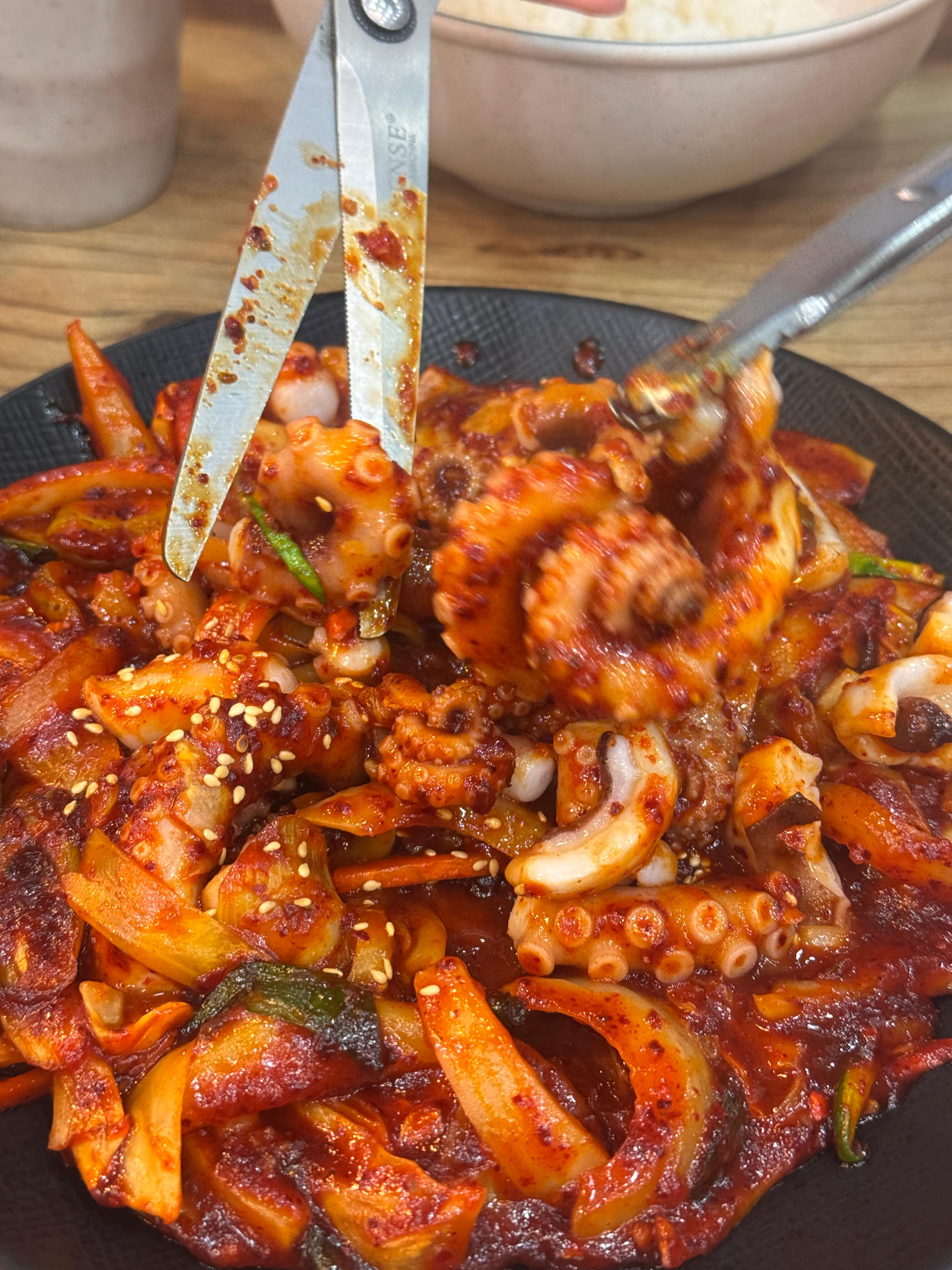 저는 갈 때마다 빨간낙지볶음을 먹어요!