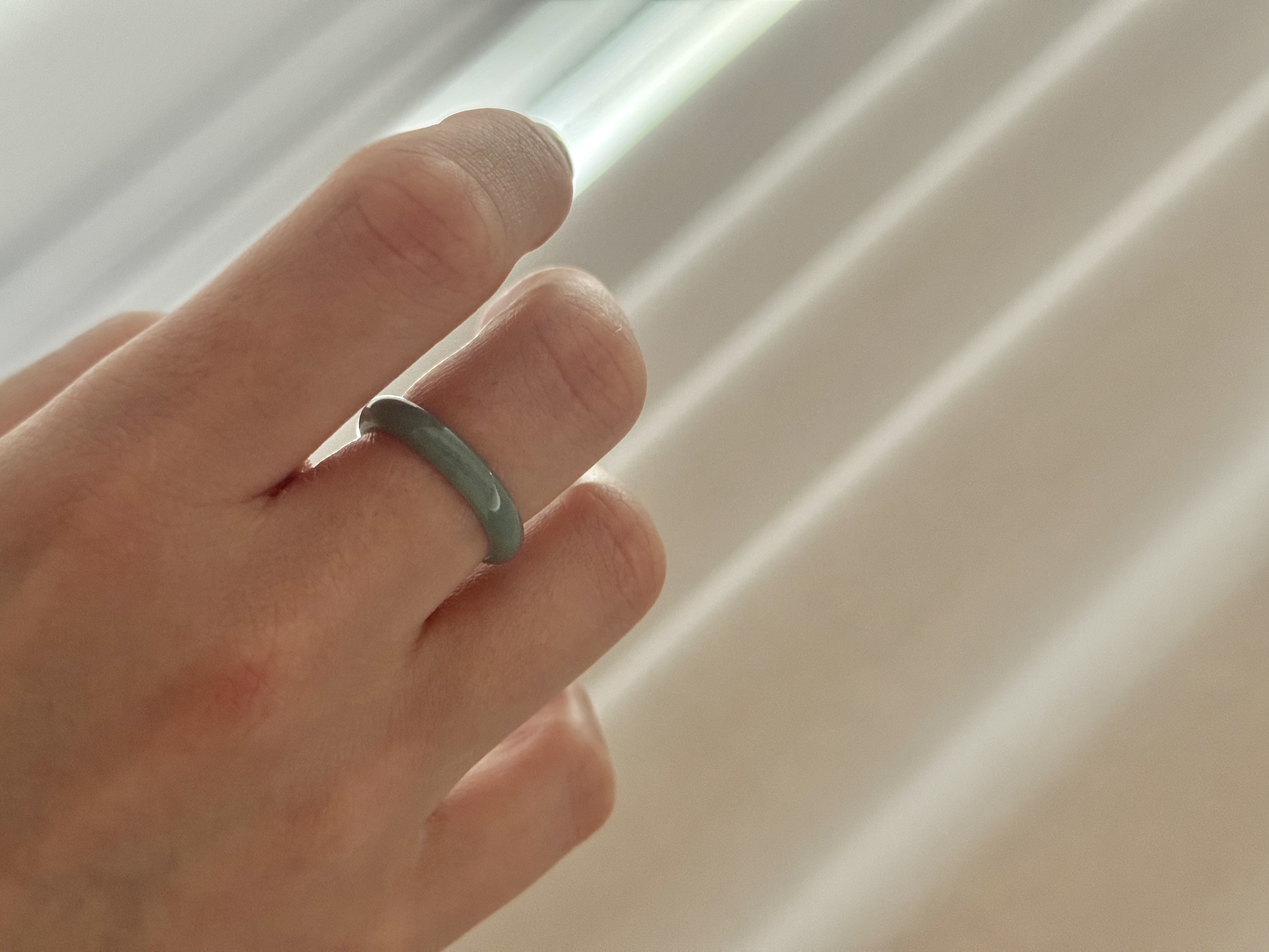 편한걸 좋아해서 평소 볼드한 반지는 생각도 안했었는데, 옥가락지는 생각보다 훨씬 부드럽고 자연스러운 착용감이었어요.