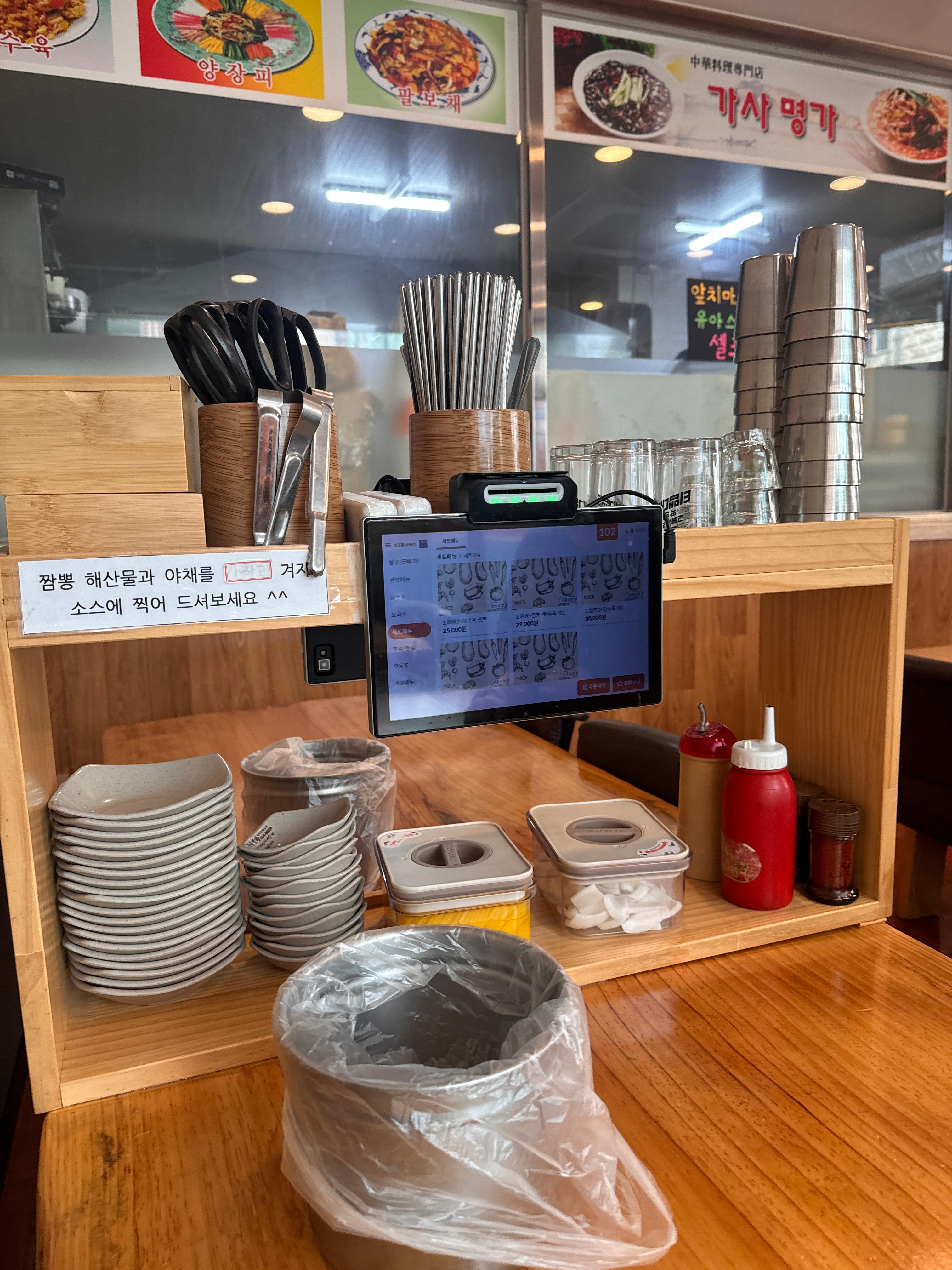 손님이 몰리는 피크 타임이 아니어서 그런지 주문 후 음식도 빠르게 나왔고, 전체적으로 필요한 물건들이 가까이 있어서 직원분을 호출 하지 않아도 원하는 것들을 모두 앉은 자리에서 해결할 수 있는 점도 매우 마음에 들었습니다.