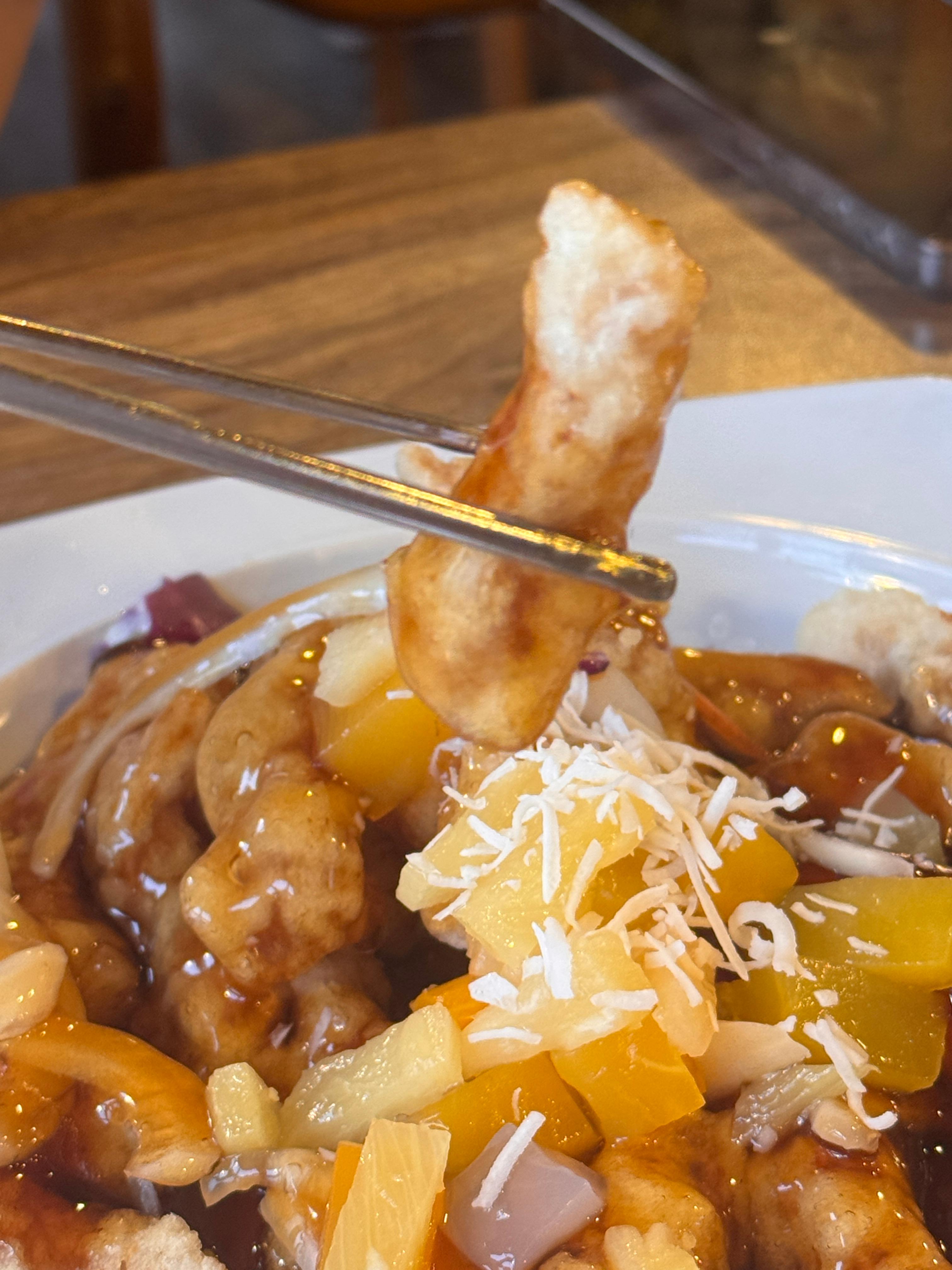 먹어보니 코코넛이더라고요! 꽤 특색있었습니다. 코코넛의 향과 상큼함 소스가 어우러지니 독특한 맛이었어요.