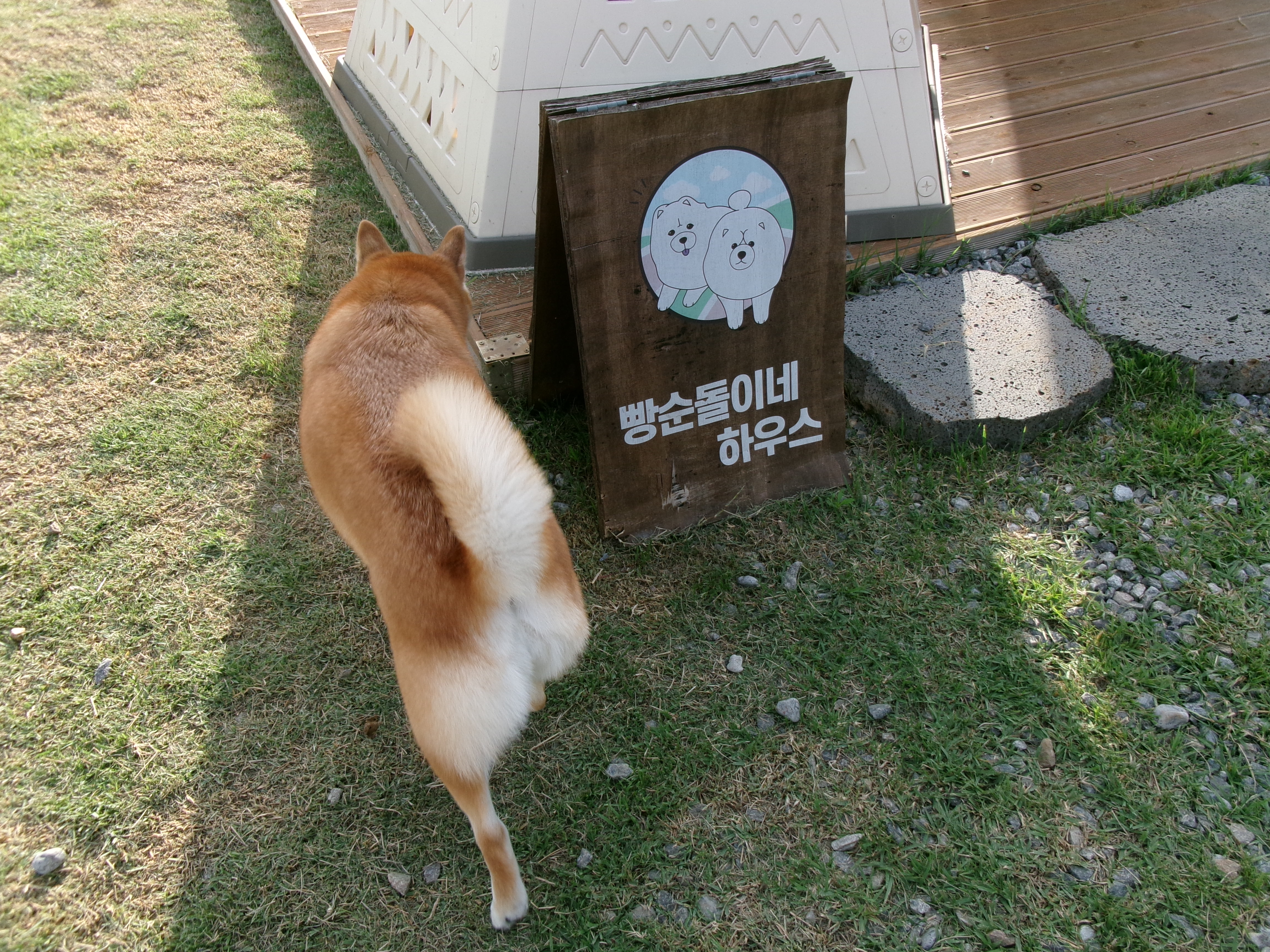 뭉치가 마당이 너무 좋았는지 집에 안들어오려고 저렇게 망부석이 되어있었어요 ㅋㅋㅋ