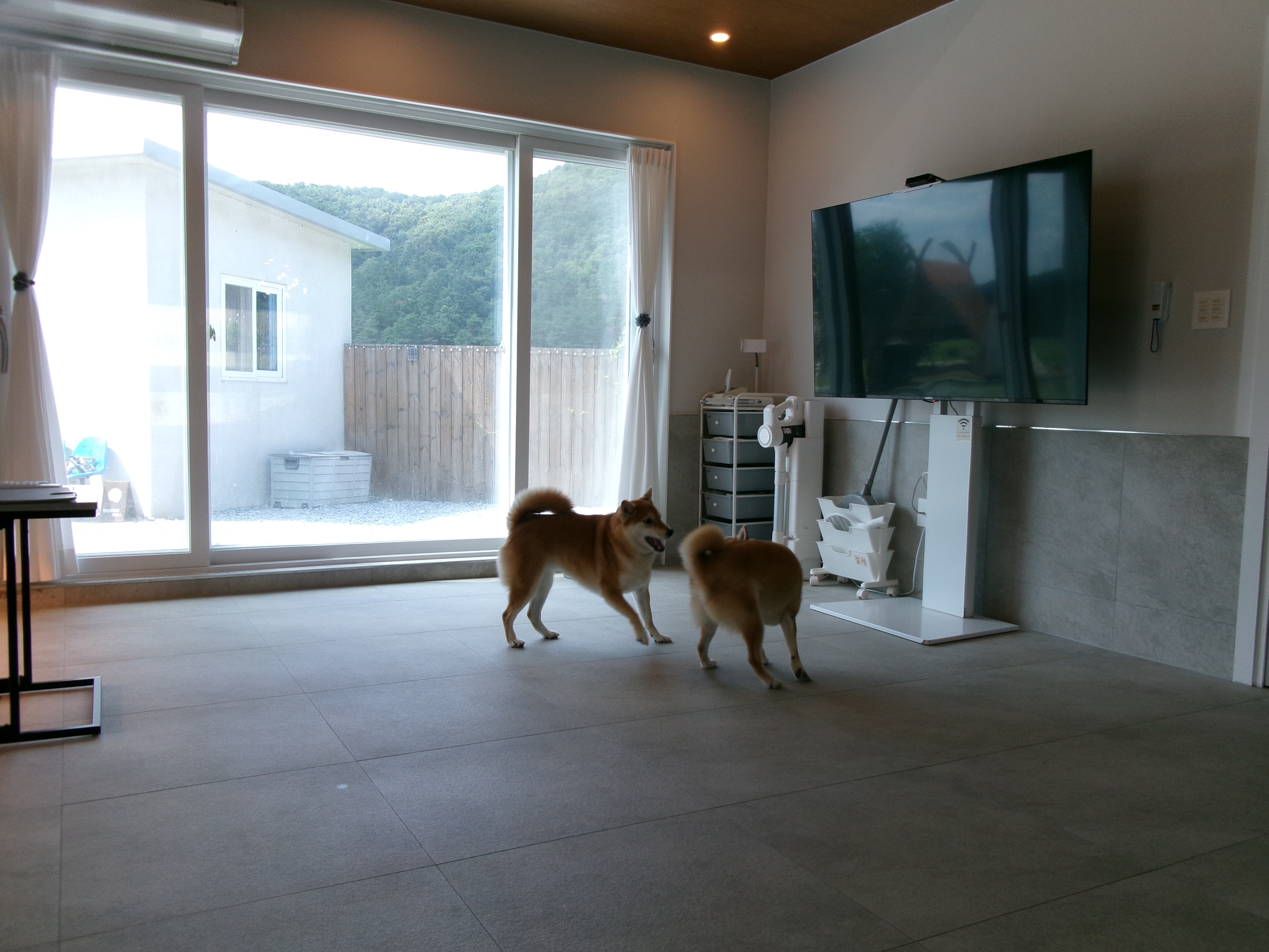 실내에서 밖에 댕댕이들이 놀고 있는 모습을 지켜 볼 수 있어서 그 점이 정말 마음에 들었습니다.