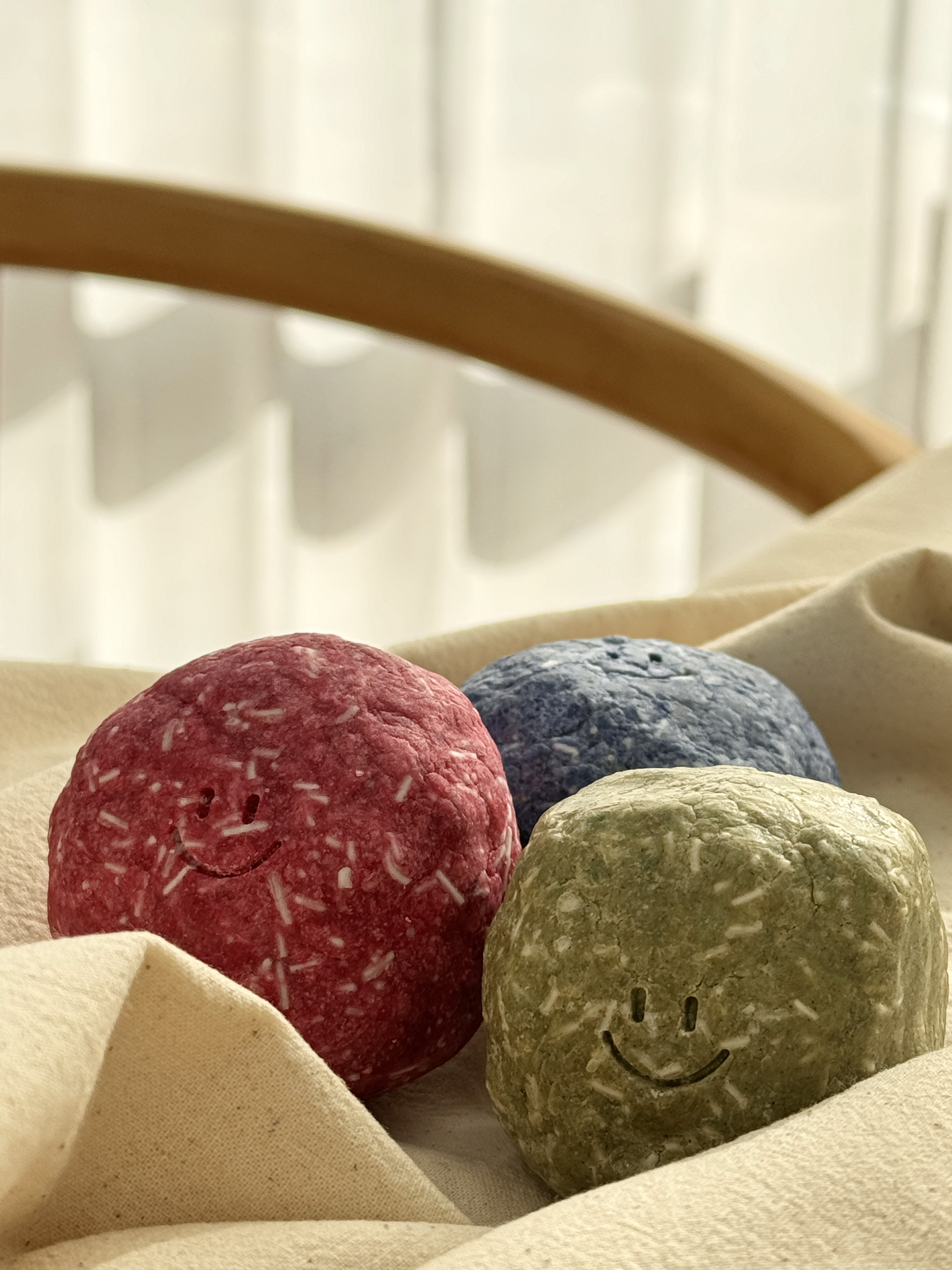 성분 : 올리브오일, 코코넛오일 등과 같은 식물성 오일, 숯, 클레이, 오트밀과 같은 천연 분말