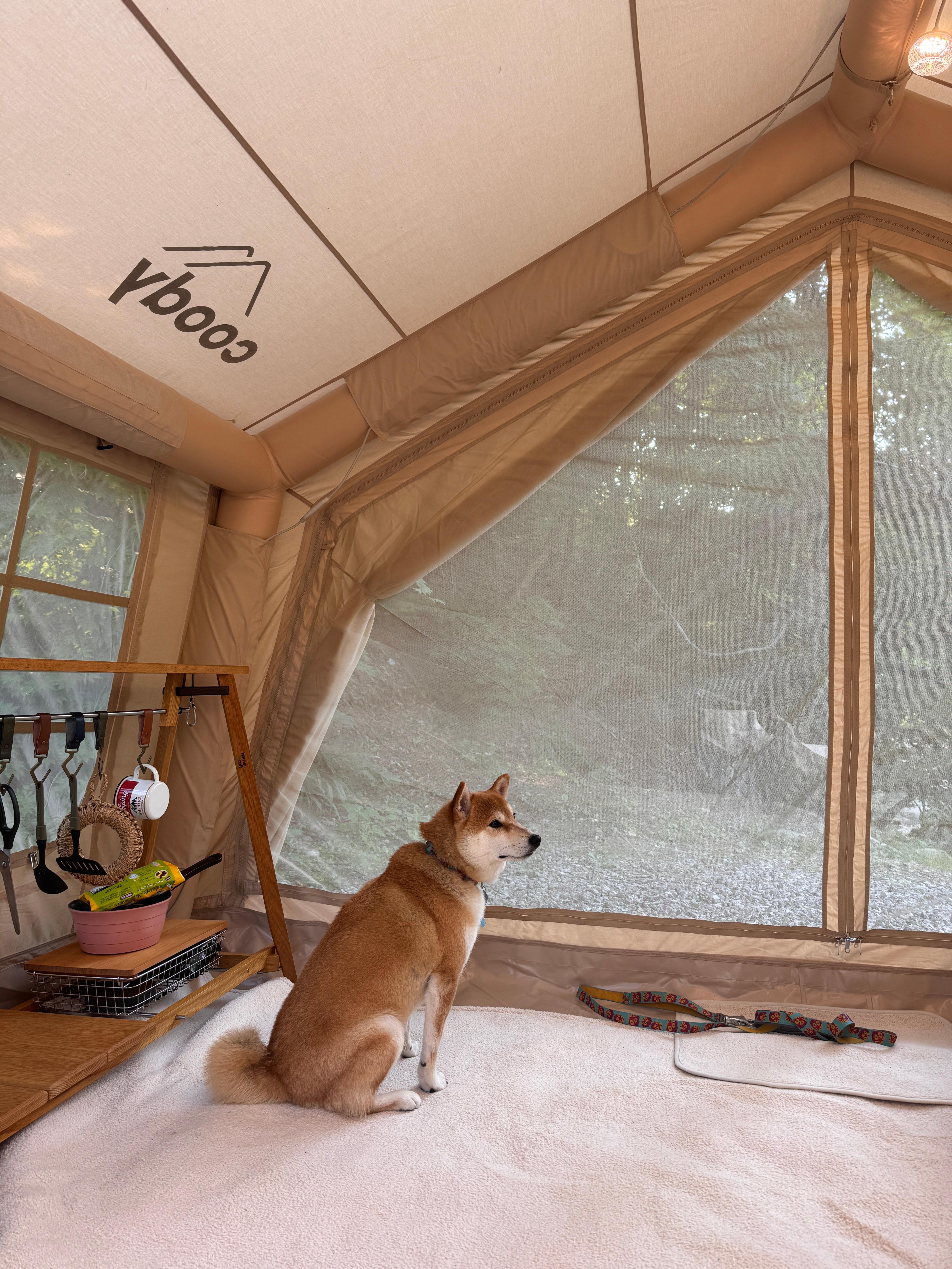 그러다 며칠 전 남편이 에어텐트에 푹 빠져버려서 결국 쿠디 에어텐트를 구입했고,