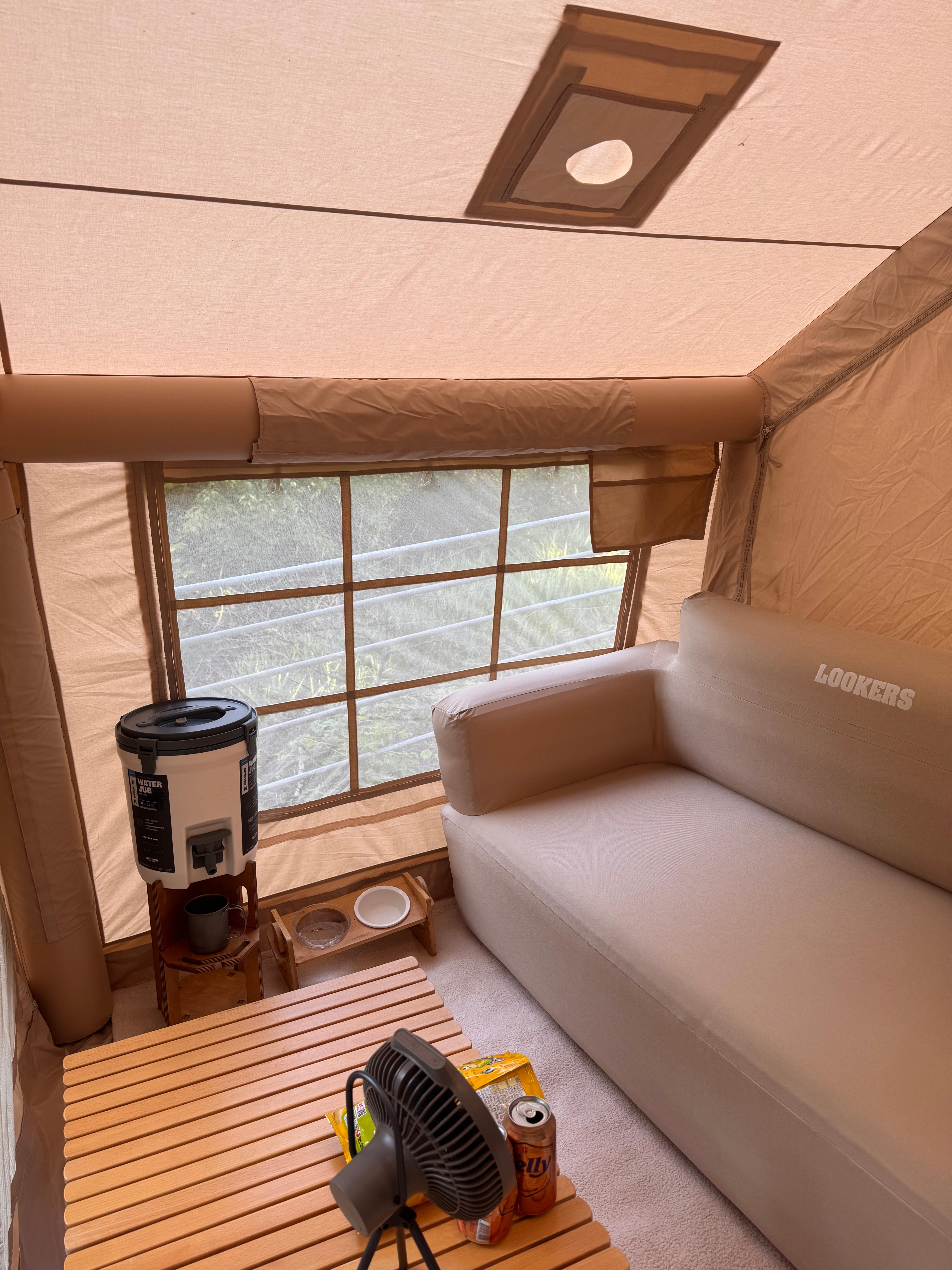 그러다 며칠 전 남편이 에어텐트에 푹 빠져버려서 결국 쿠디 에어텐트를 구입했고,